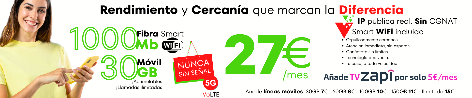 * App Zapi, no tiene permanencia. El acceso simultáneo a la plataforma está permitido hasta en 4 pantallas a la vez con +8€ y en 1 pantalla con +5€. La promoción de Zapi TV 2 meses gratis es exclusiva para instalaciones nuevas